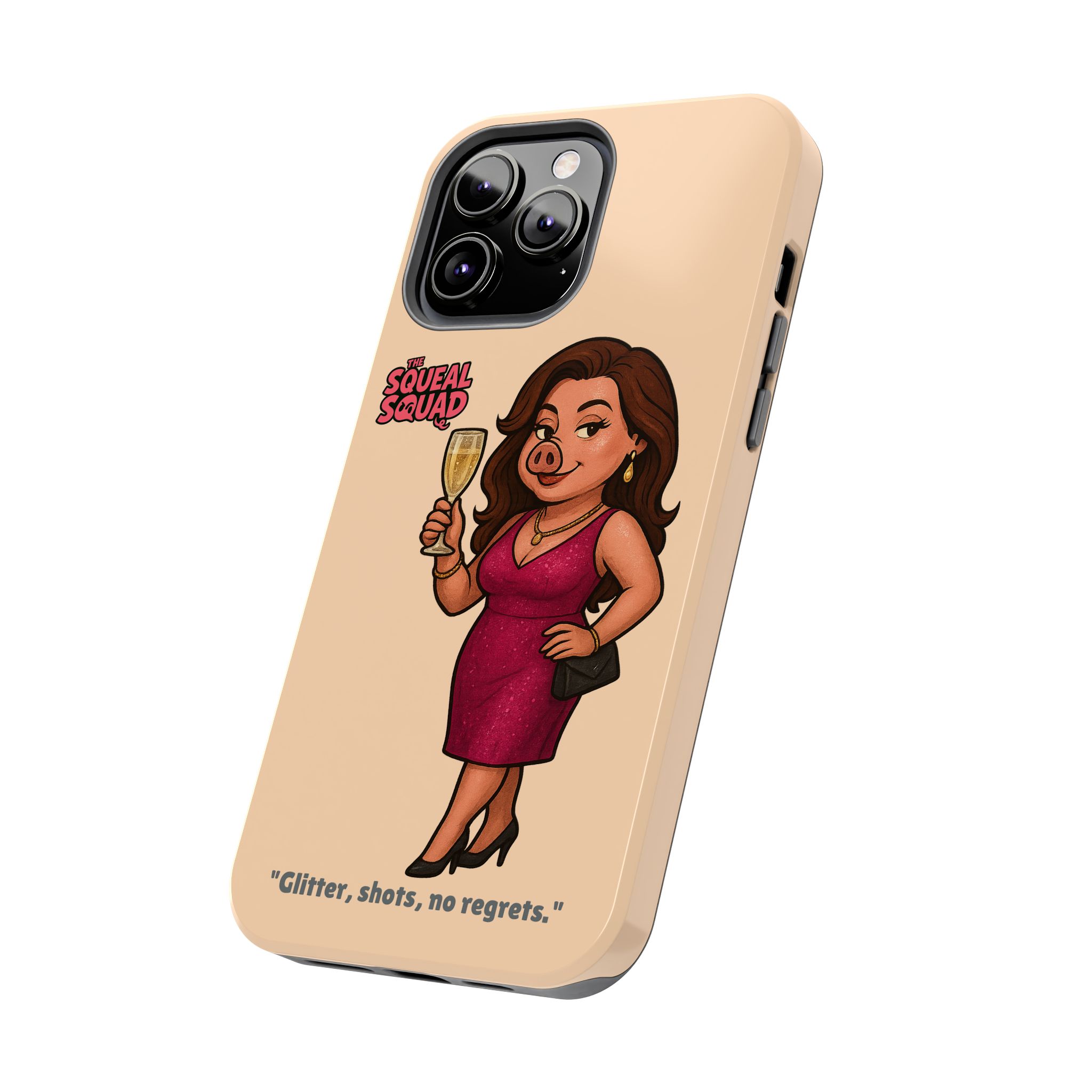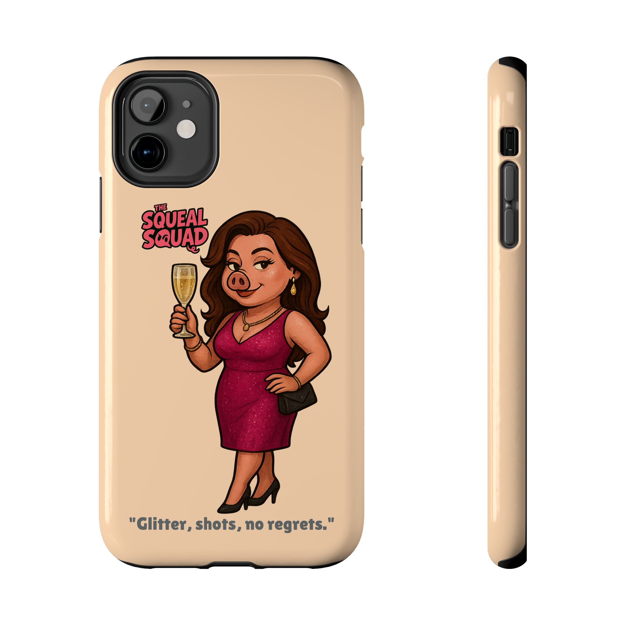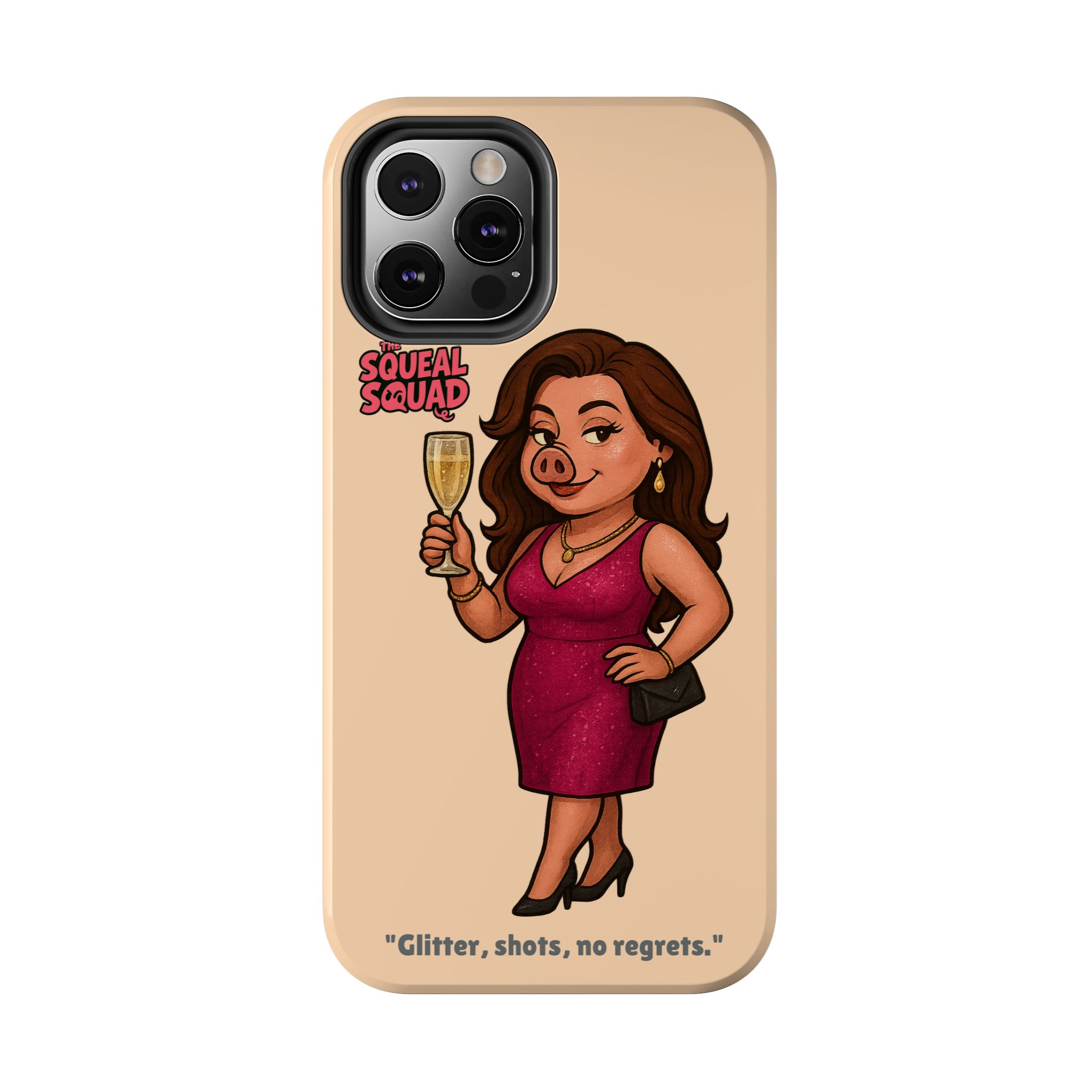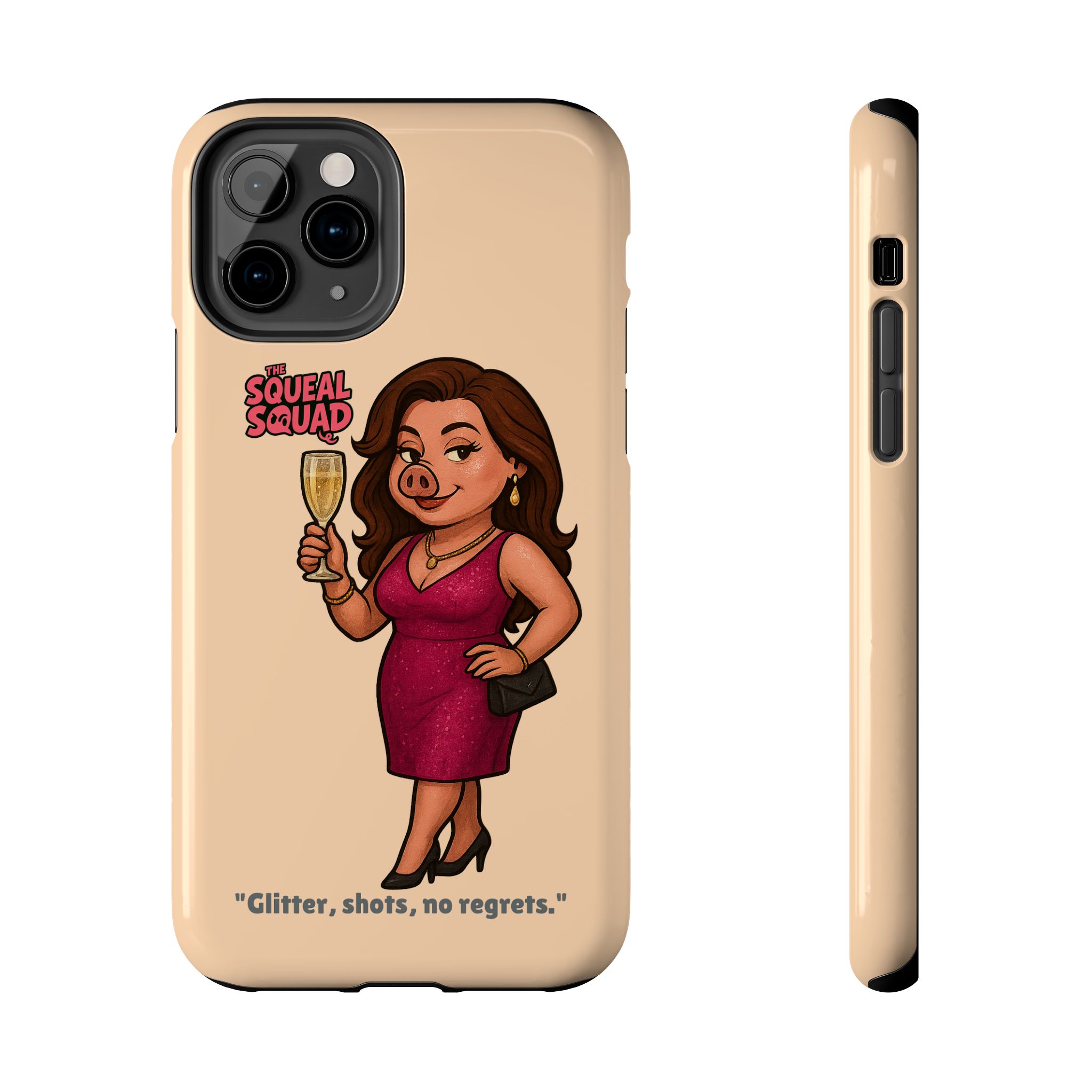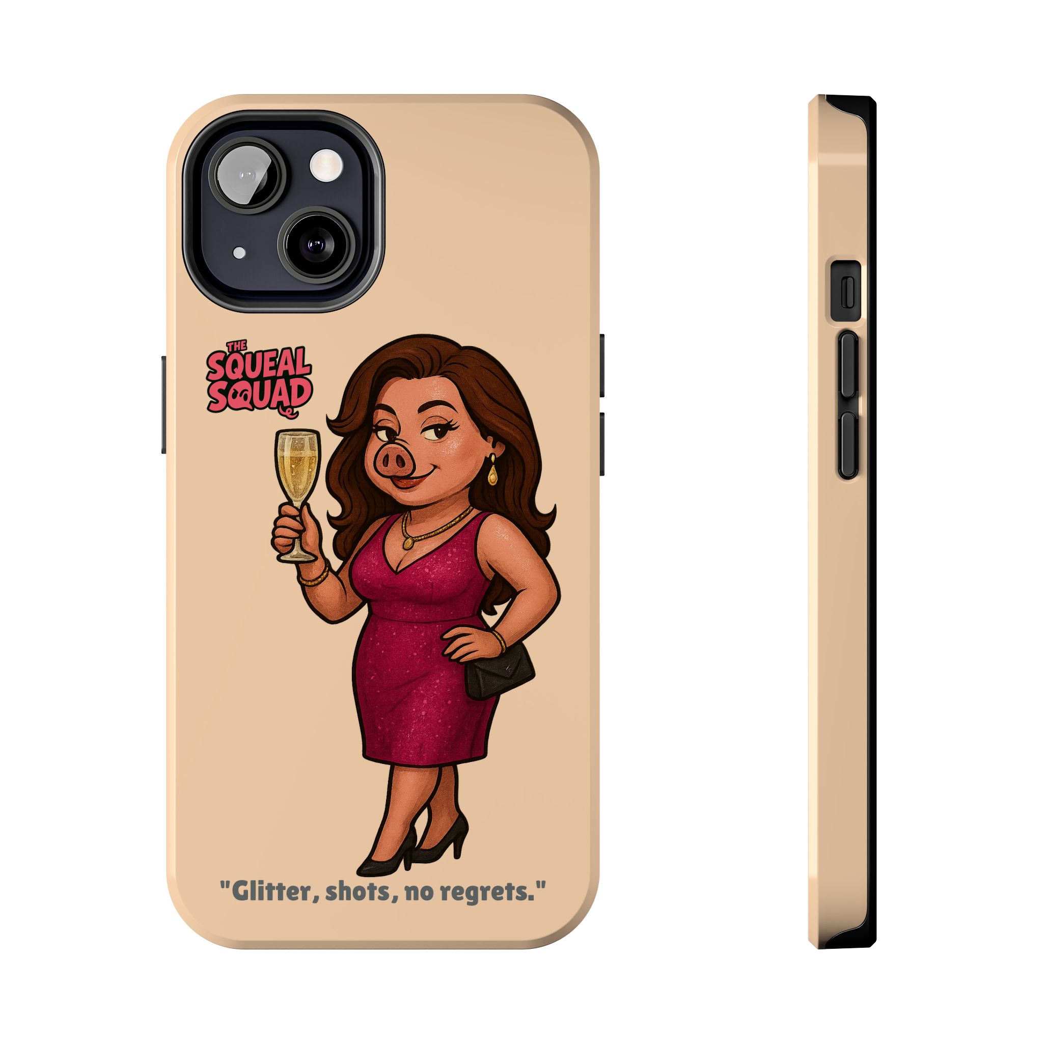 The Velvette Phone Case is all charm and control — just like The Squeal Squad’s queen of the nightlife. Designed for those who move through chaos with style, it protects your phone while turning every glance into a double-take. Sleek, durable, and a little bit dangerous — exactly how she likes it.