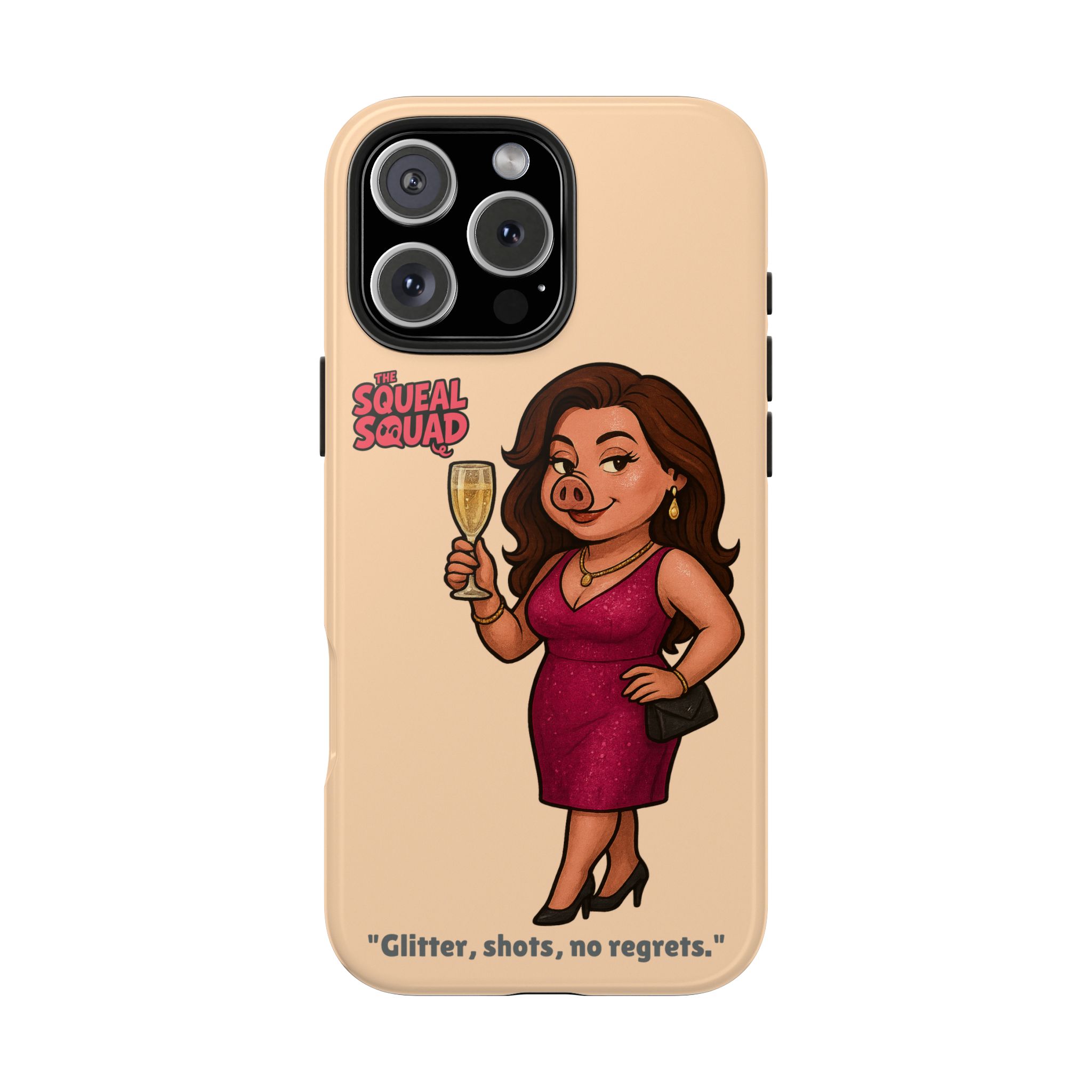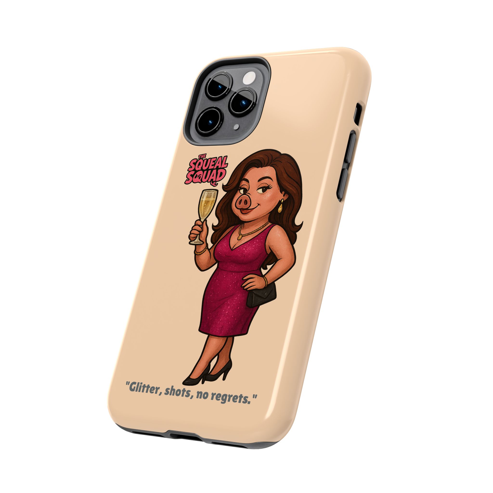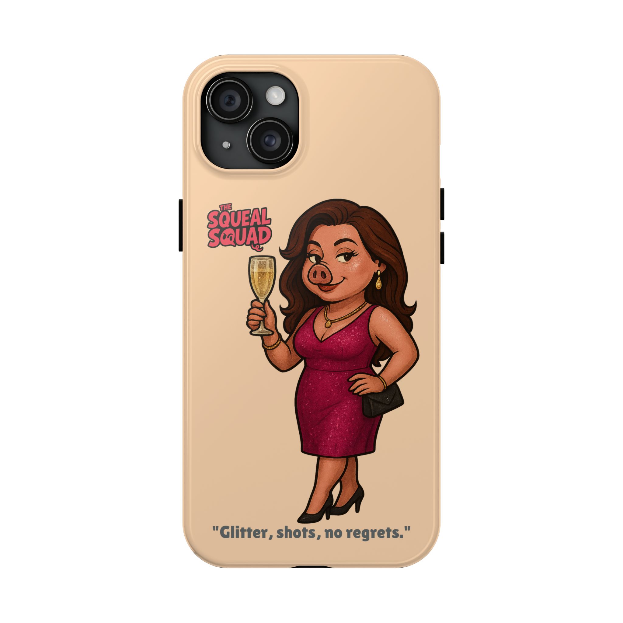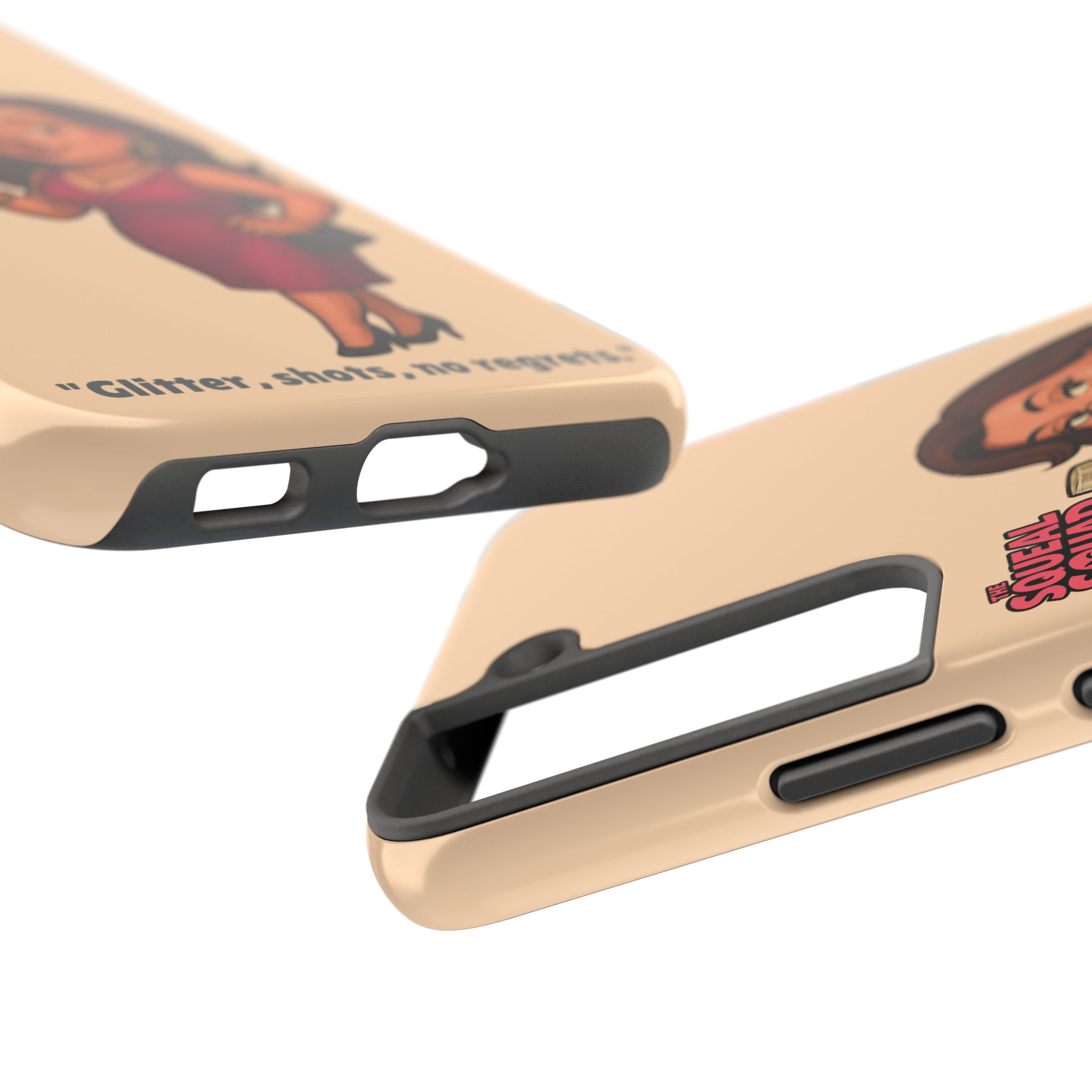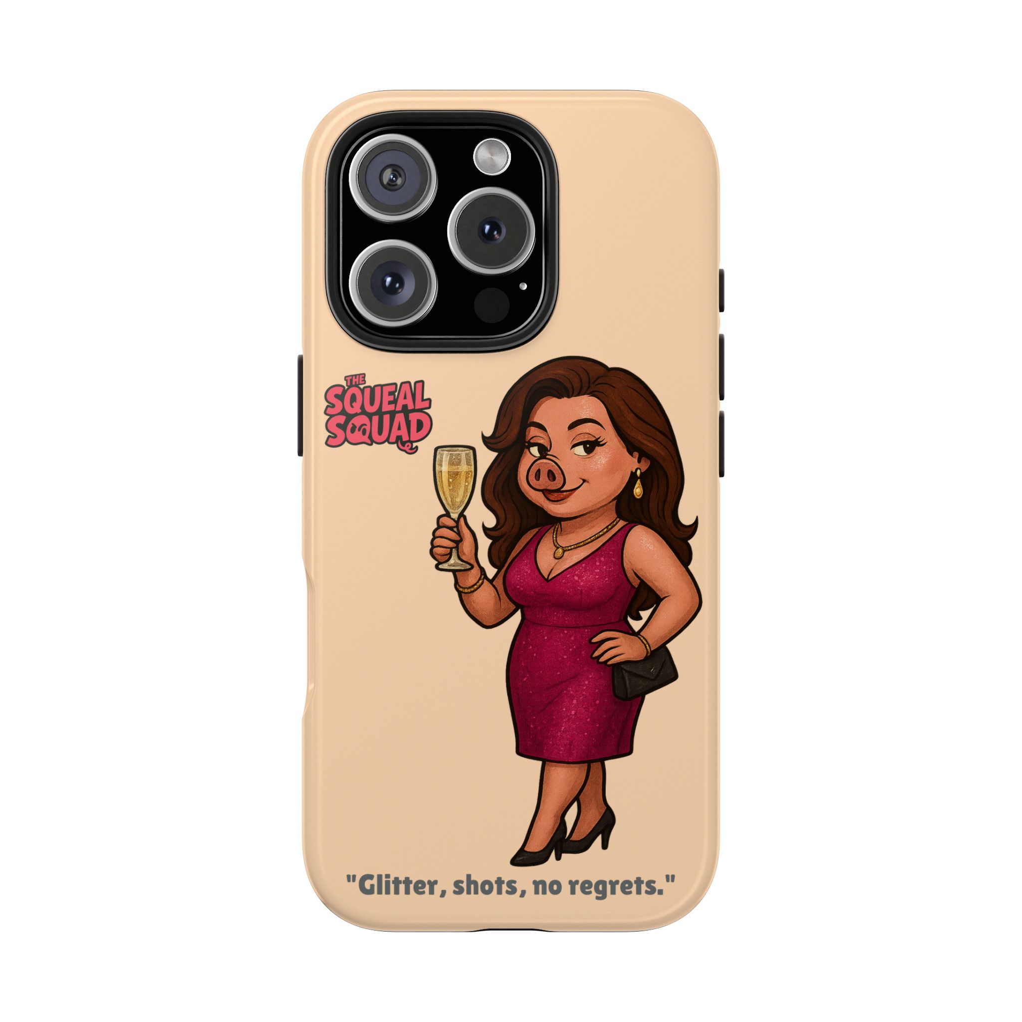 The Velvette Phone Case is all charm and control — just like The Squeal Squad’s queen of the nightlife. Designed for those who move through chaos with style, it protects your phone while turning every glance into a double-take. Sleek, durable, and a little bit dangerous — exactly how she likes it.