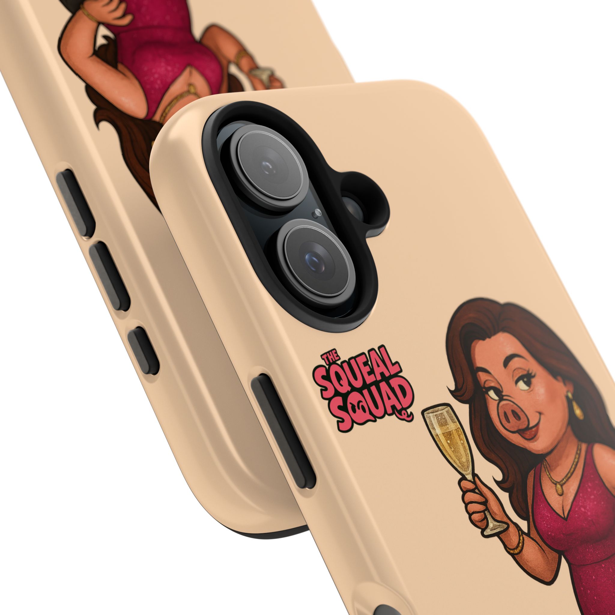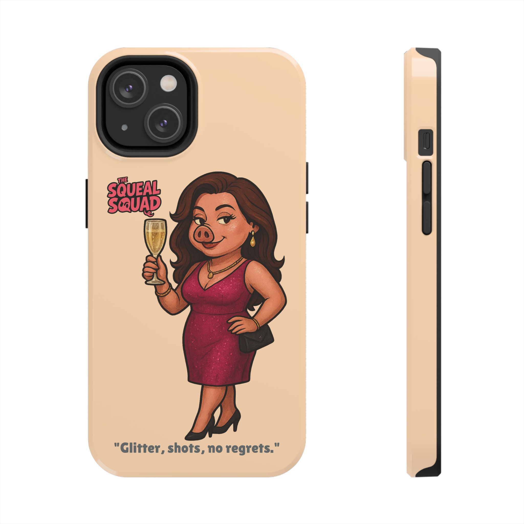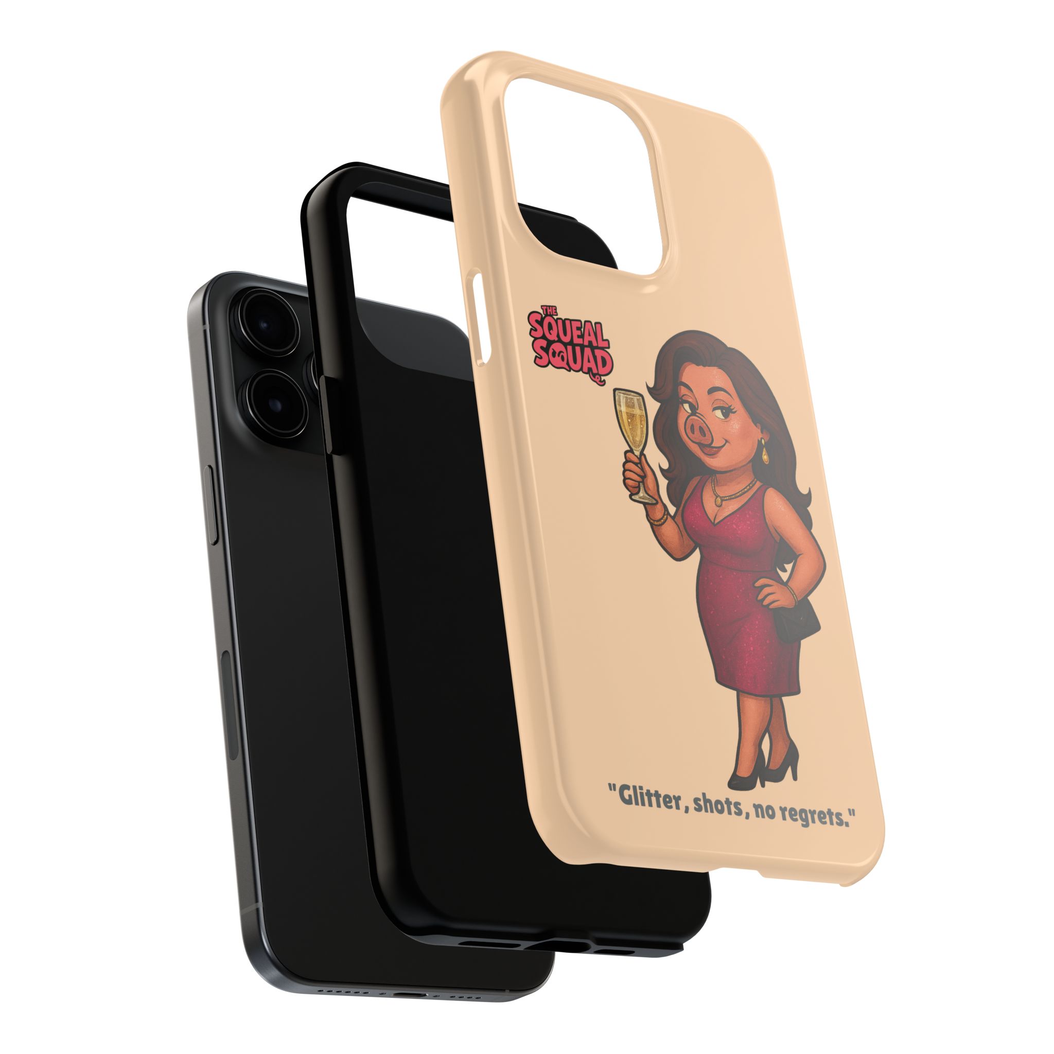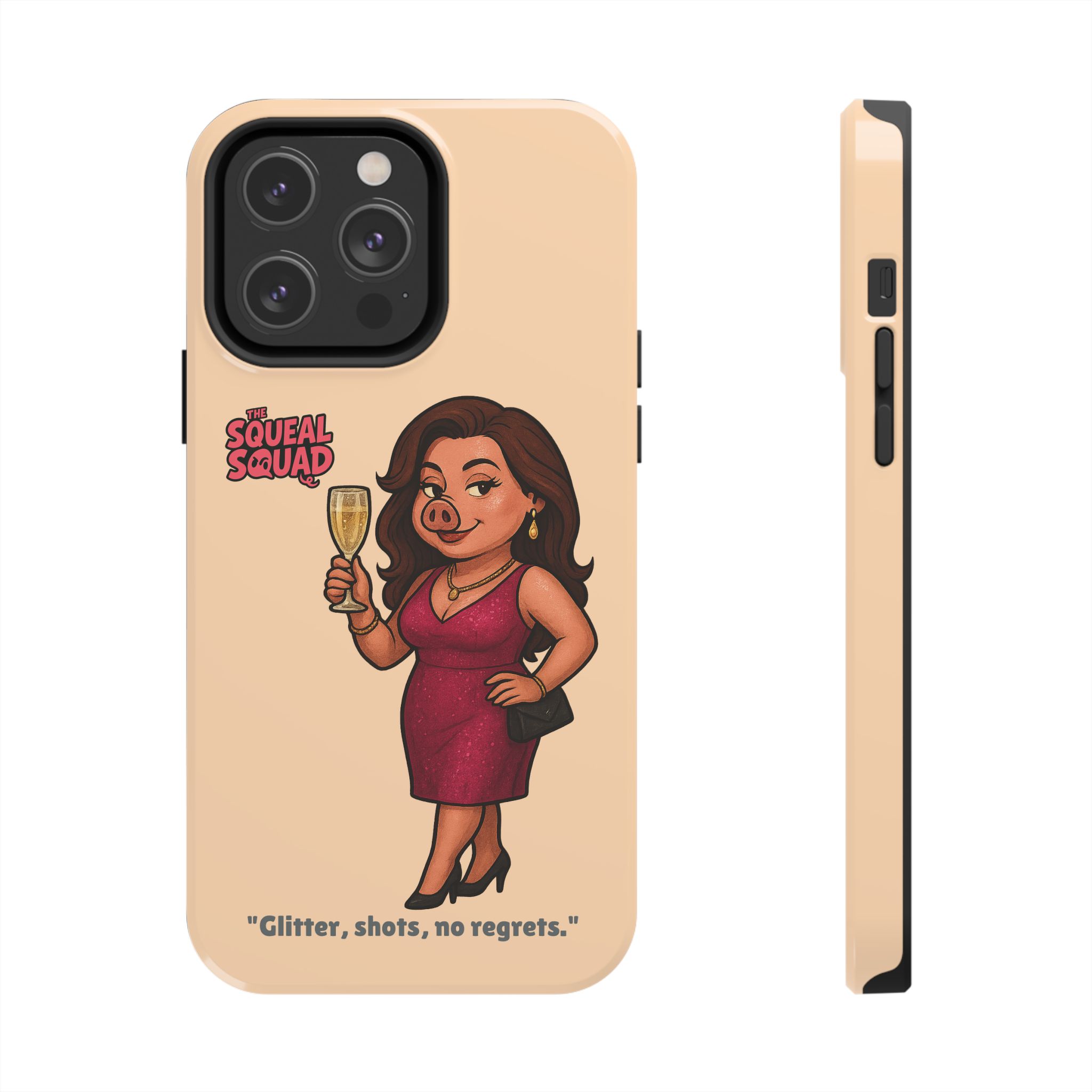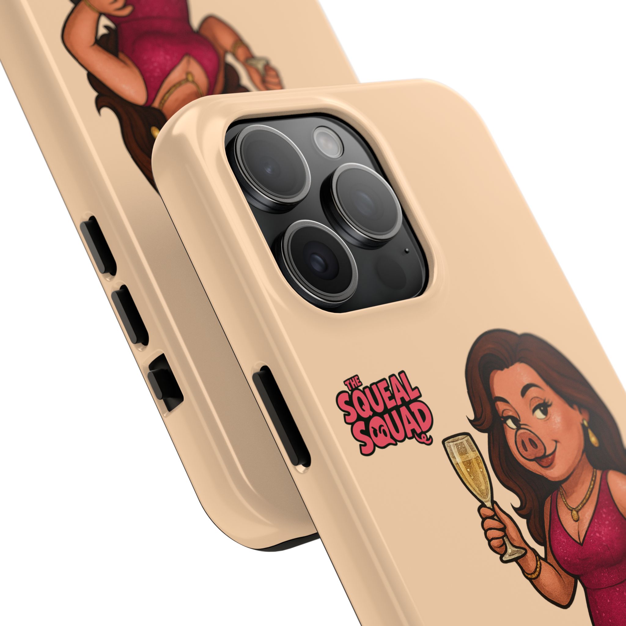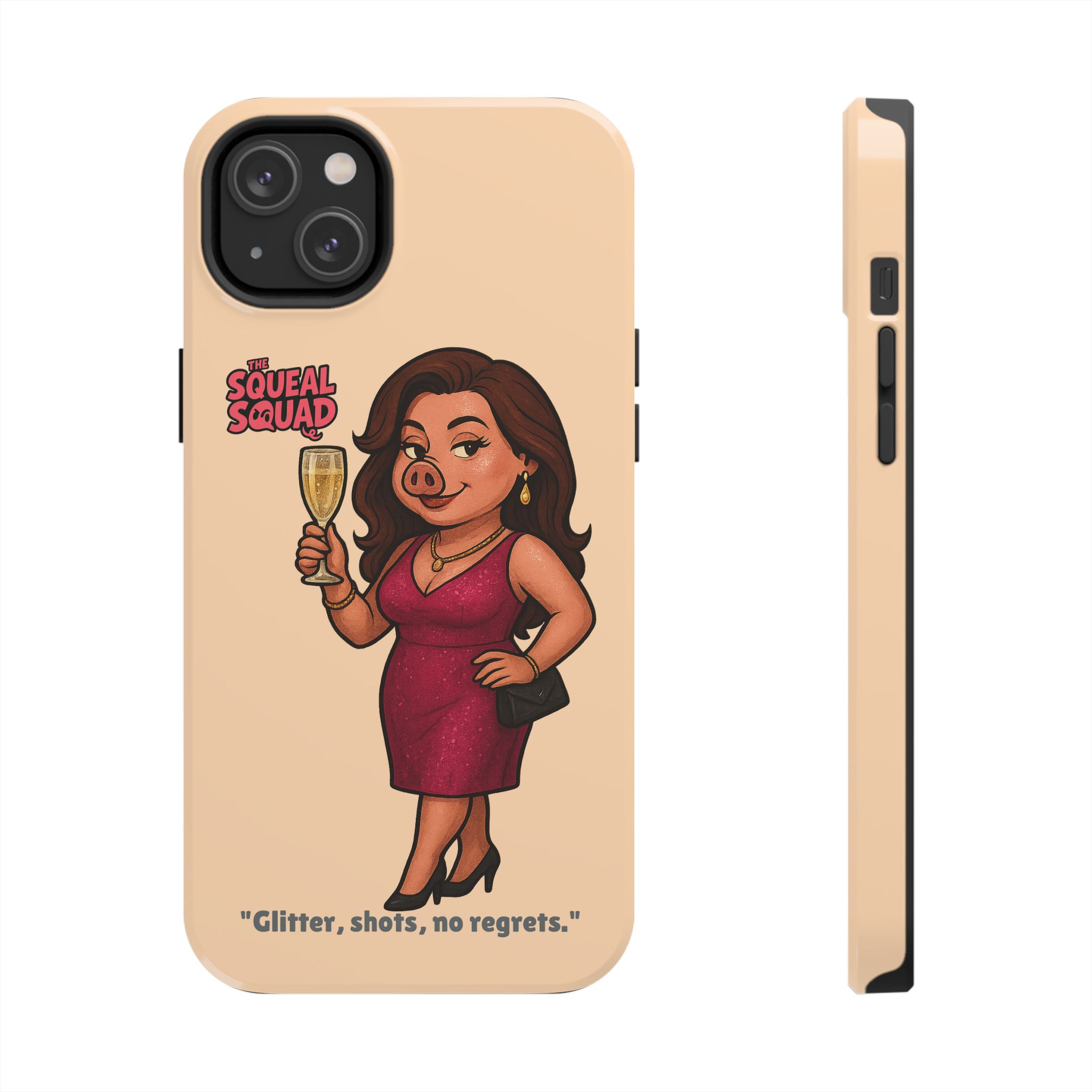 The Velvette Phone Case is all charm and control — just like The Squeal Squad’s queen of the nightlife. Designed for those who move through chaos with style, it protects your phone while turning every glance into a double-take. Sleek, durable, and a little bit dangerous — exactly how she likes it.