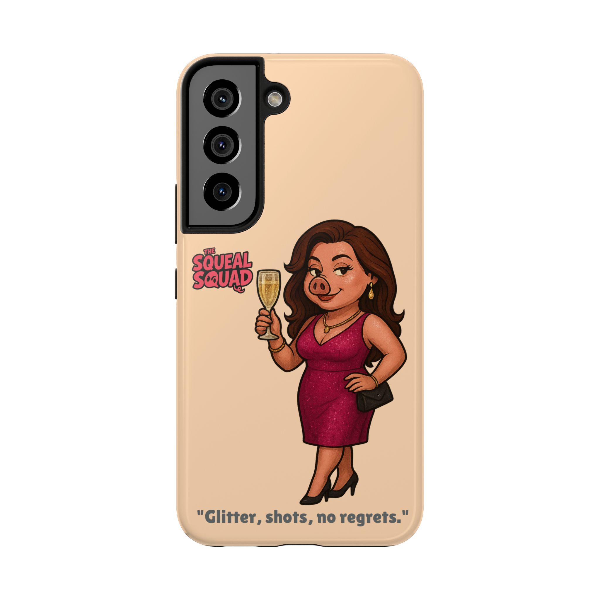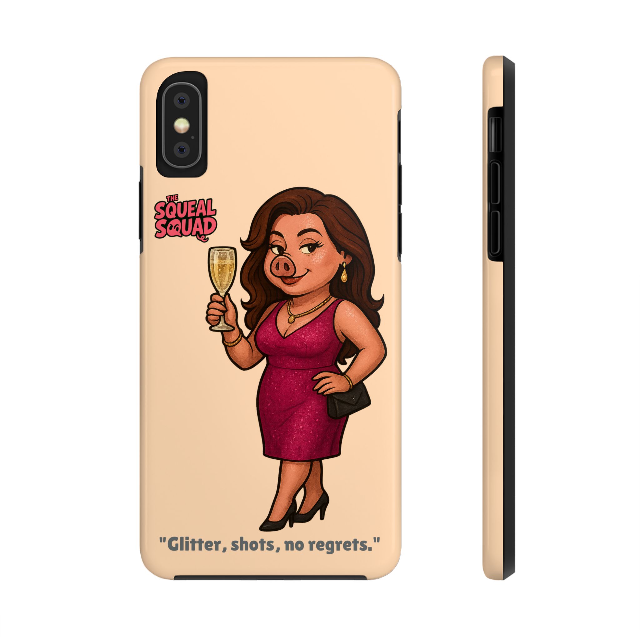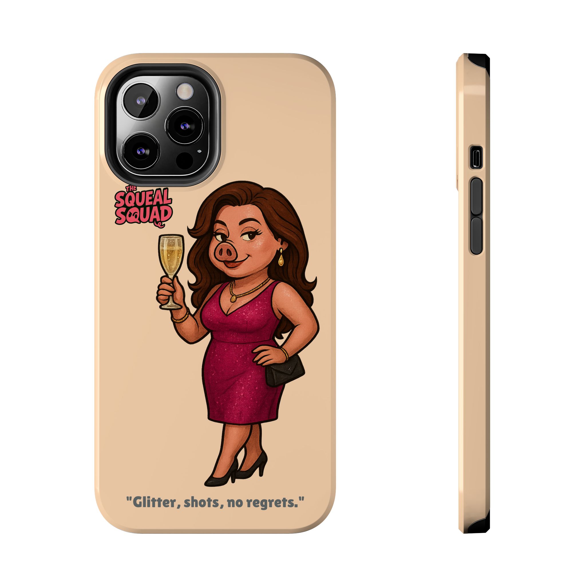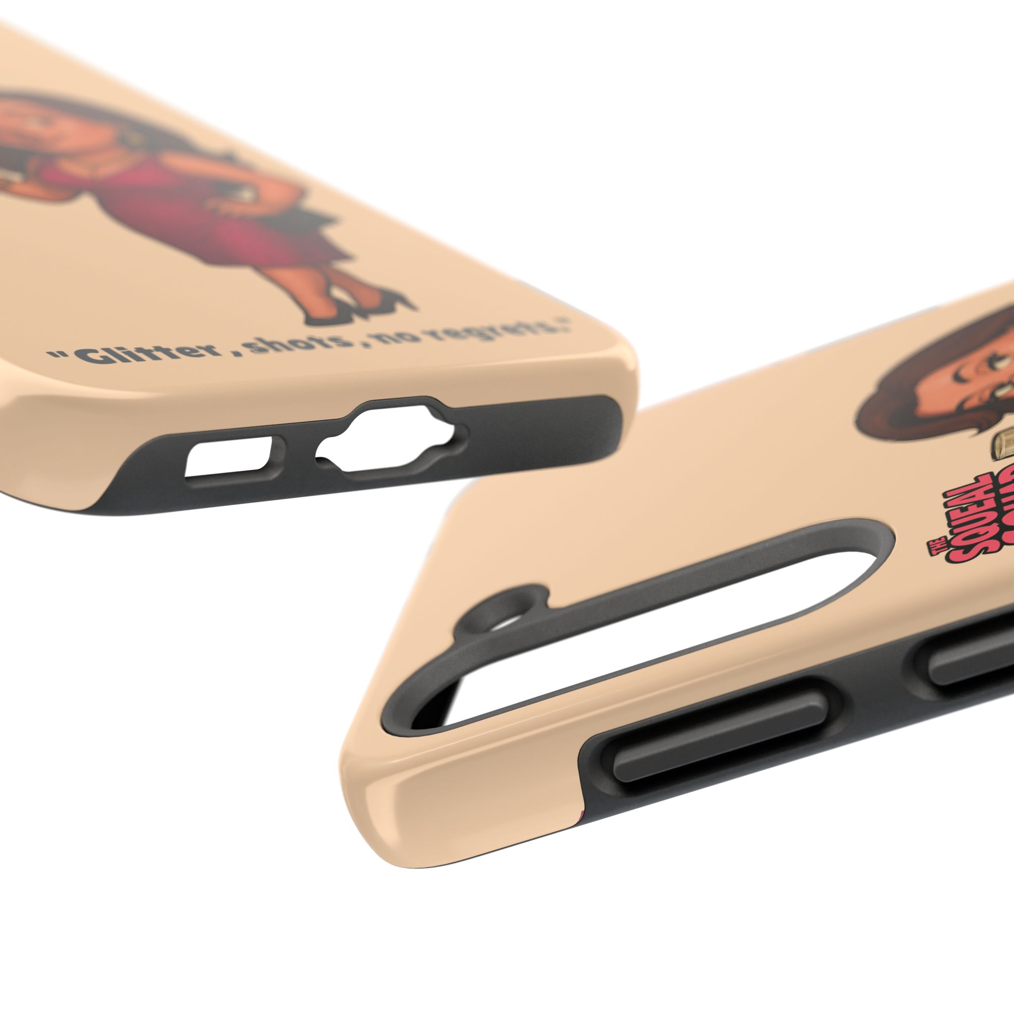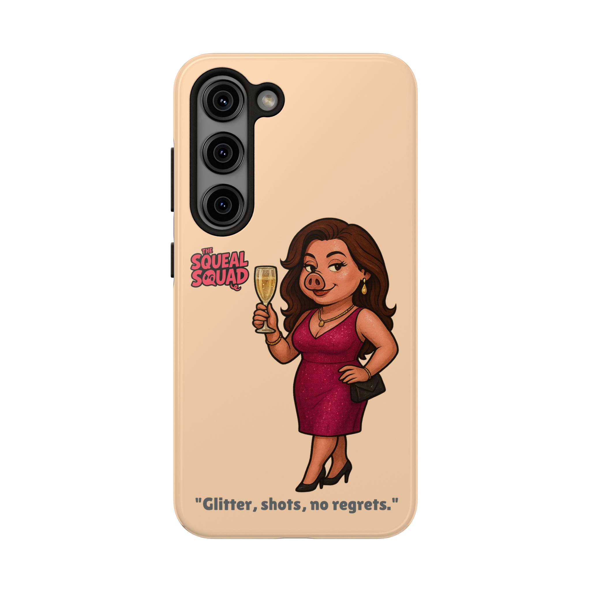 The Velvette Phone Case is all charm and control — just like The Squeal Squad’s queen of the nightlife. Designed for those who move through chaos with style, it protects your phone while turning every glance into a double-take. Sleek, durable, and a little bit dangerous — exactly how she likes it.