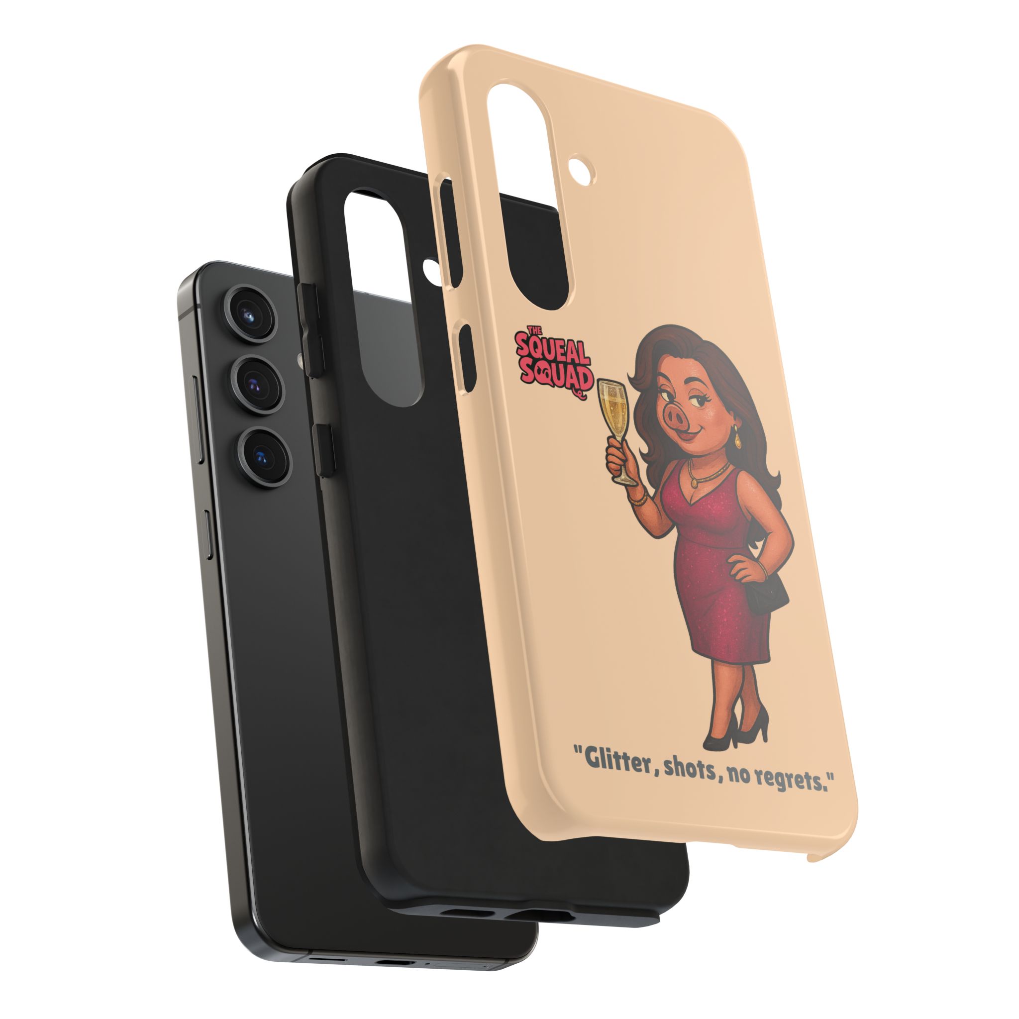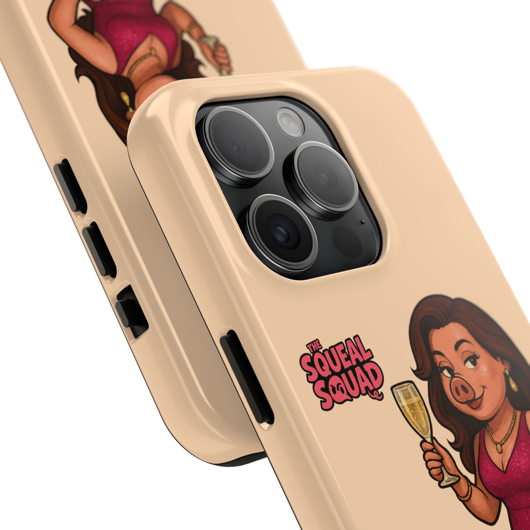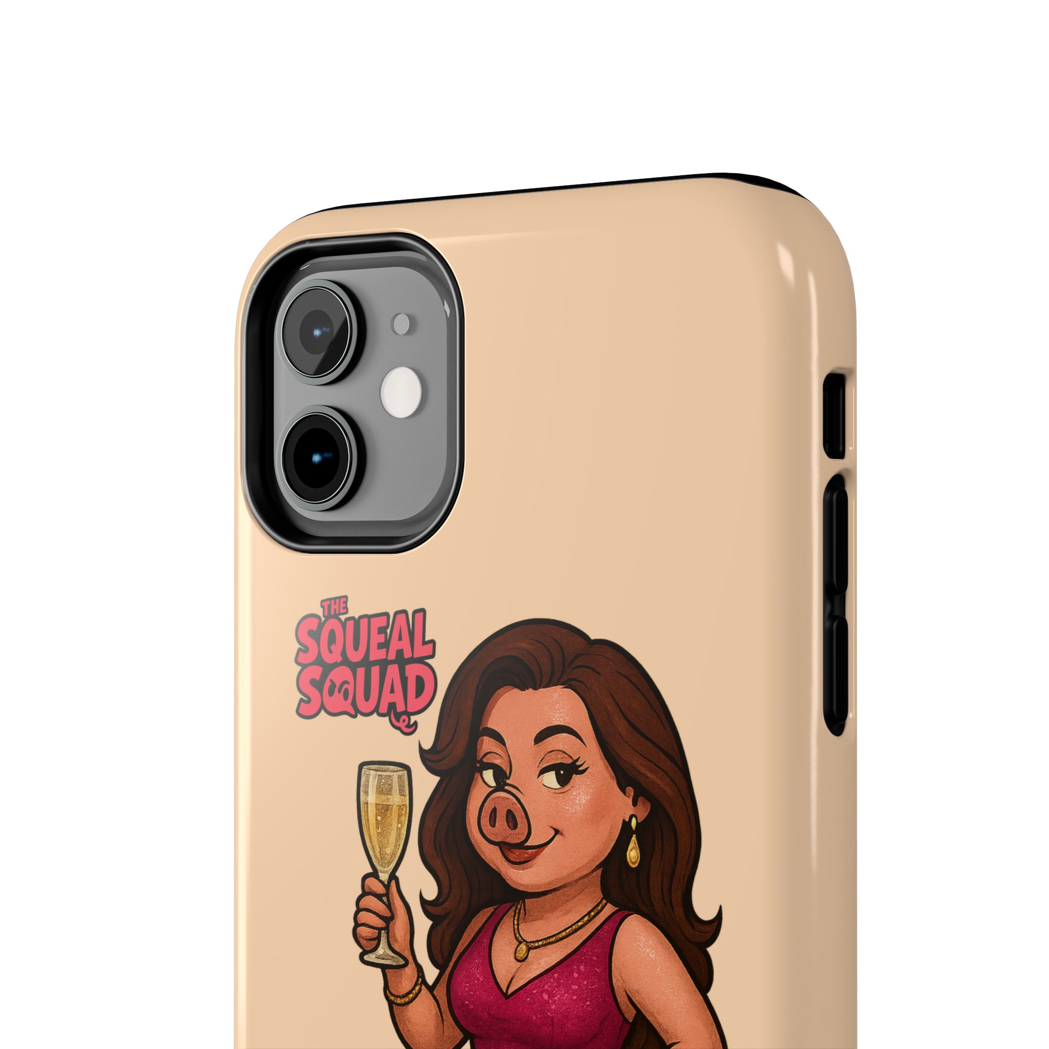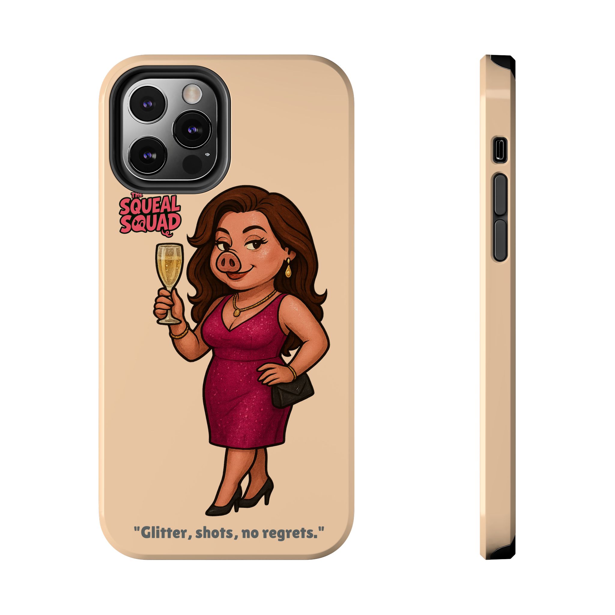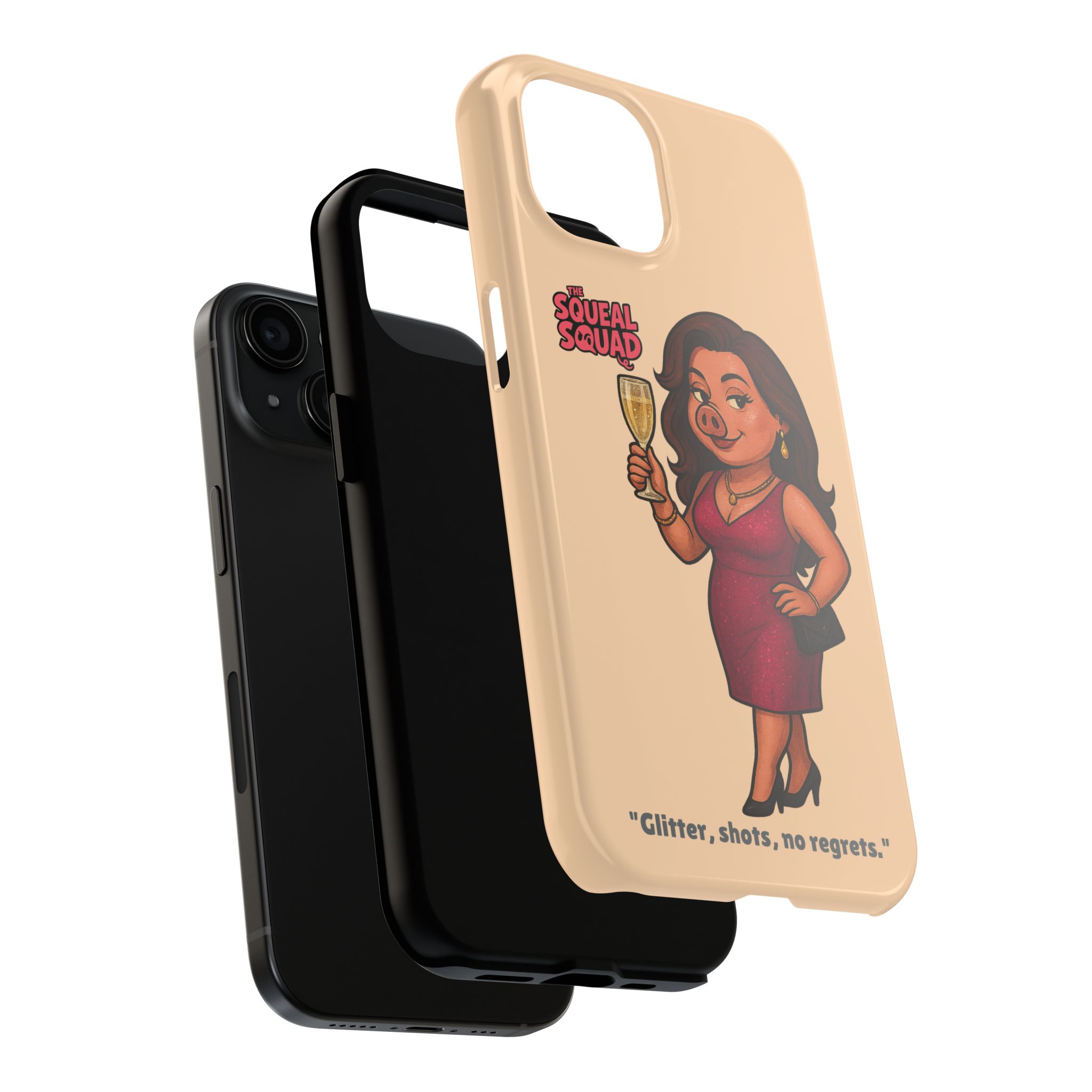 The Velvette Phone Case is all charm and control — just like The Squeal Squad’s queen of the nightlife. Designed for those who move through chaos with style, it protects your phone while turning every glance into a double-take. Sleek, durable, and a little bit dangerous — exactly how she likes it.
