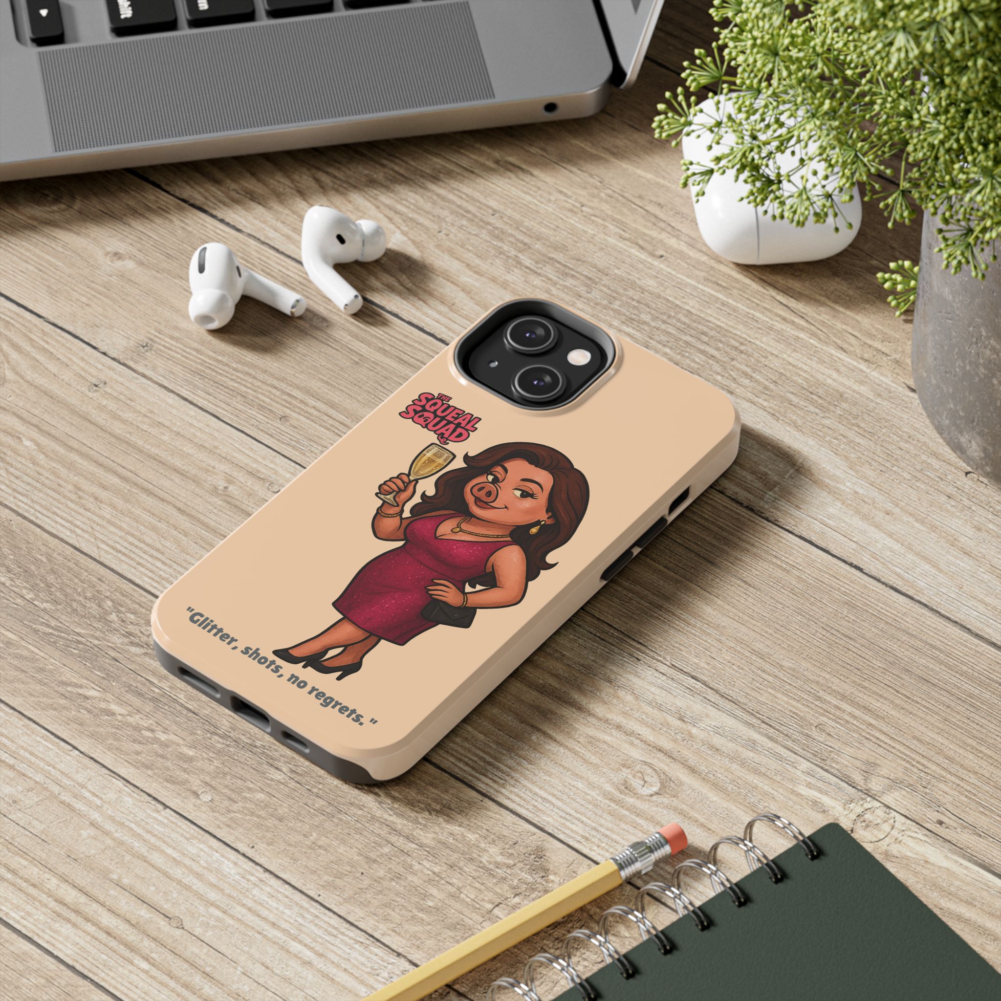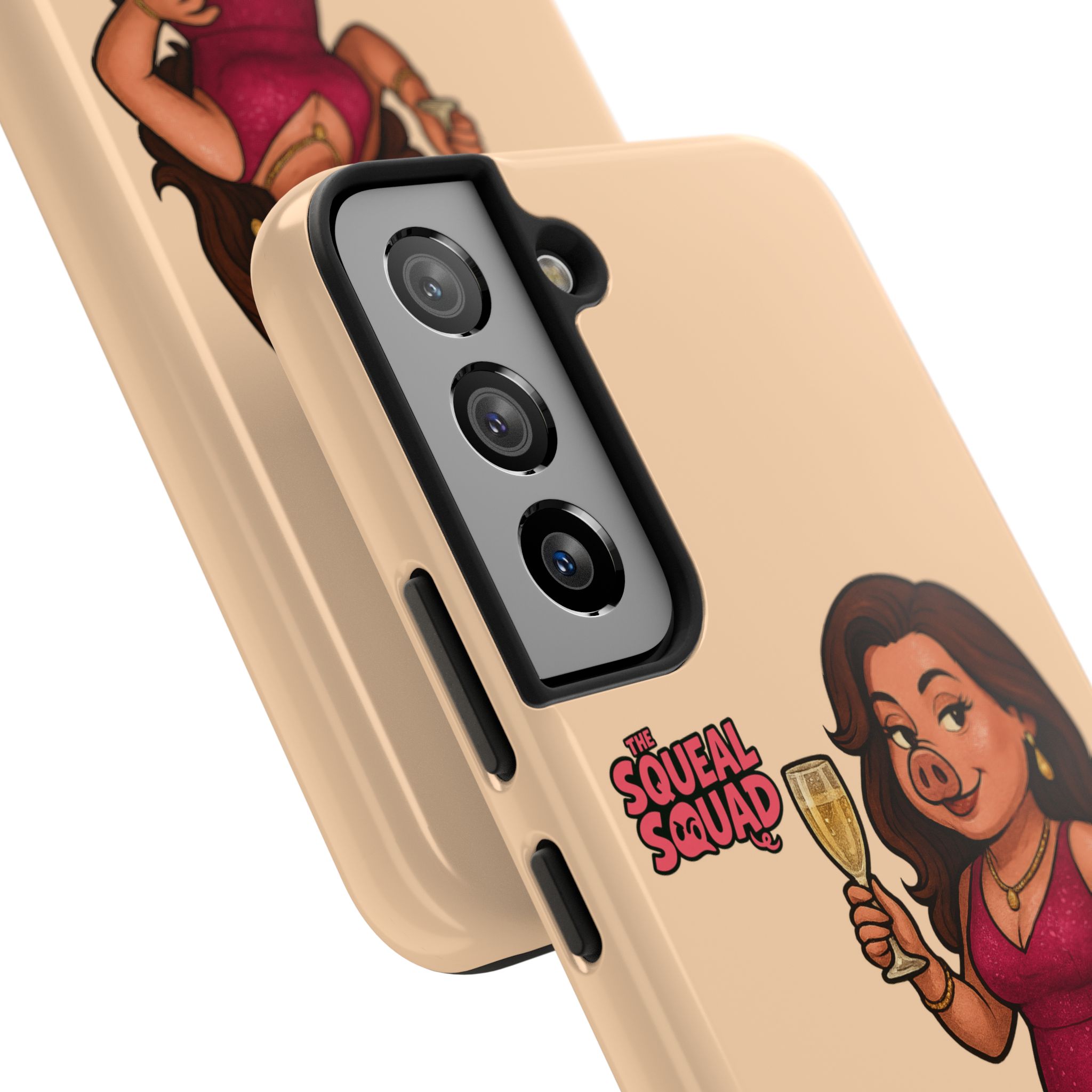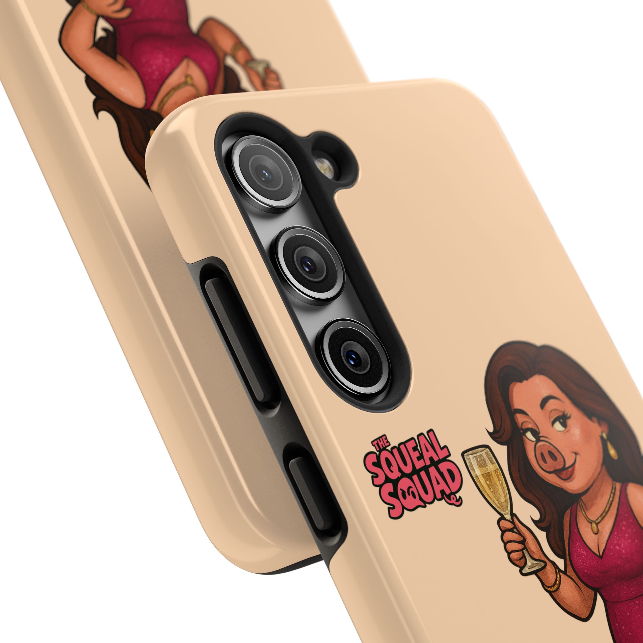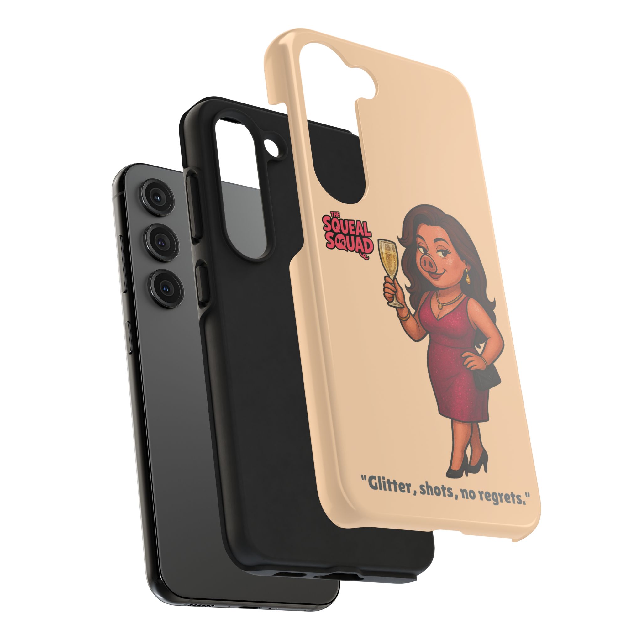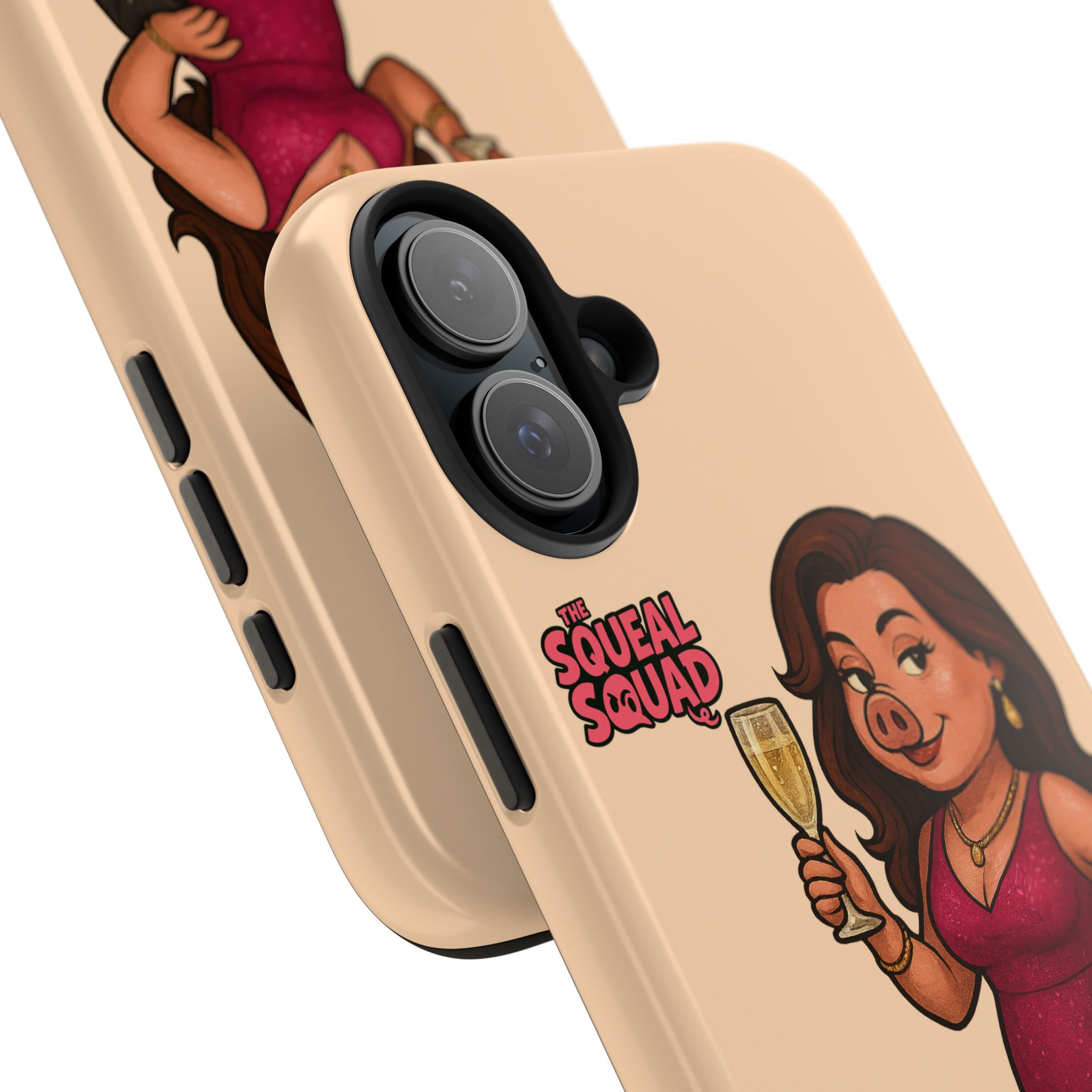 The Velvette Phone Case is all charm and control — just like The Squeal Squad’s queen of the nightlife. Designed for those who move through chaos with style, it protects your phone while turning every glance into a double-take. Sleek, durable, and a little bit dangerous — exactly how she likes it.